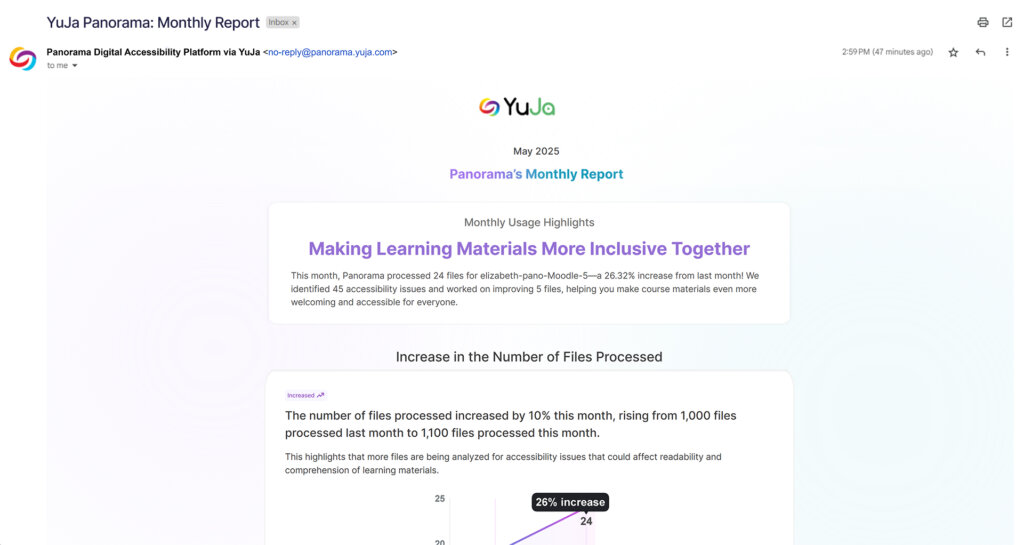 In addition to the automatic background processing of newly added LMS content, Panorama now prioritizes newly added files to pages that LMS users have visited recently.