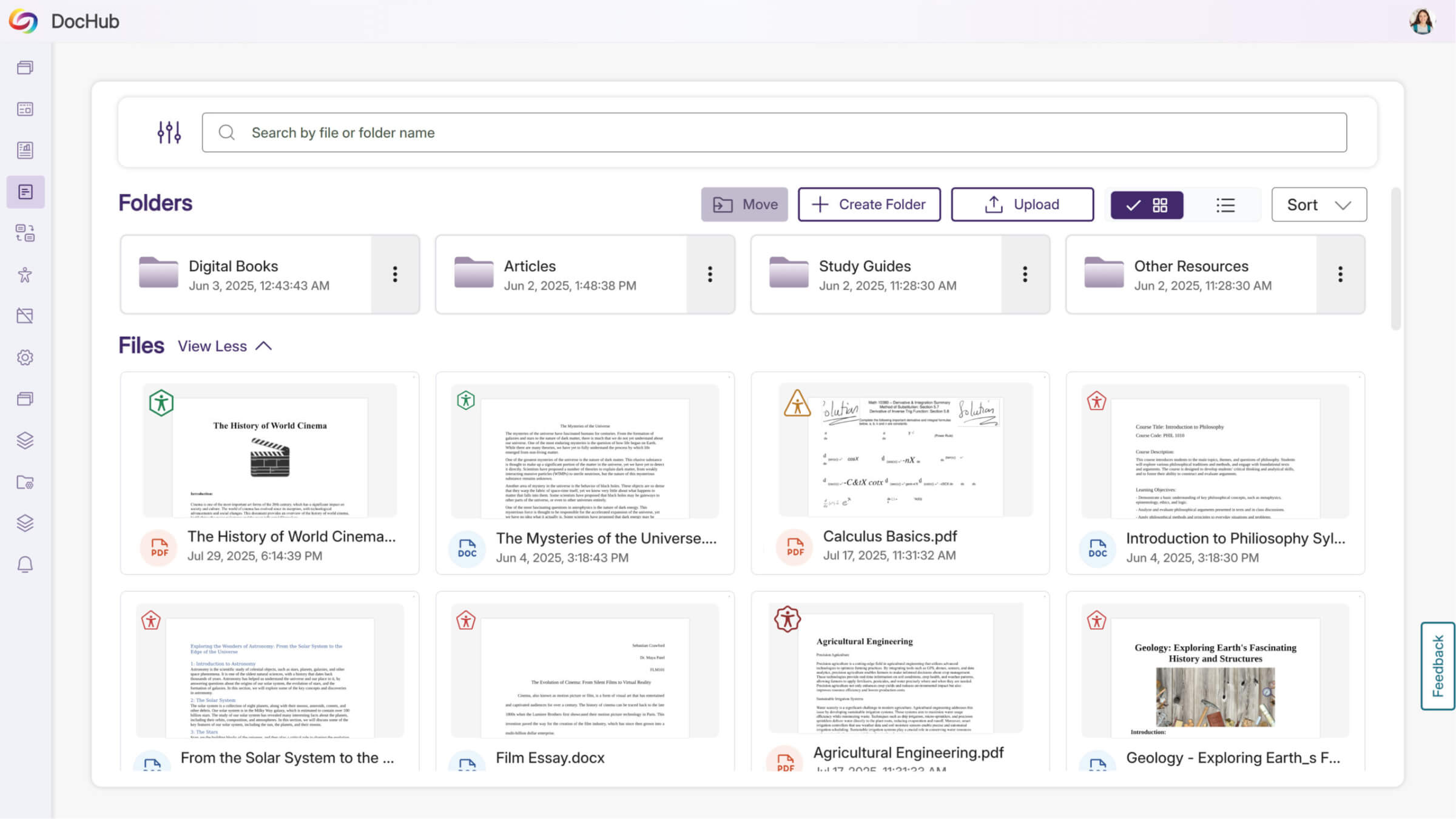 DocHub provides a secure, cloud-based repository to view scores, remediate media files, and pre-generate accessible alternatives, all in the same interface you use for web pages. Administrators can set default folder structures for consistent document organization across teams.