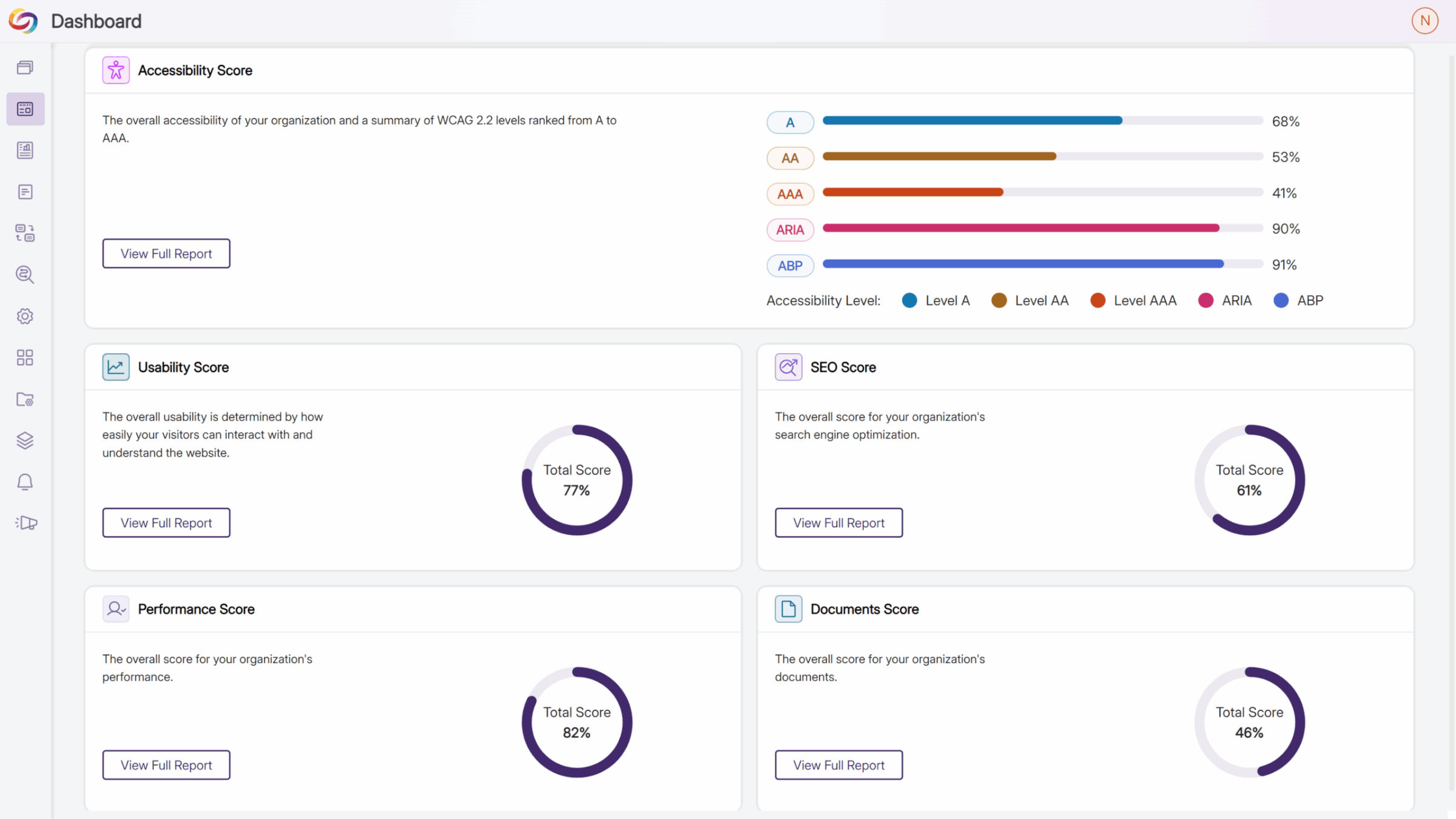 Centralized oversight of accessibility across all SharePoint sites with automated scanning and consolidated reporting.