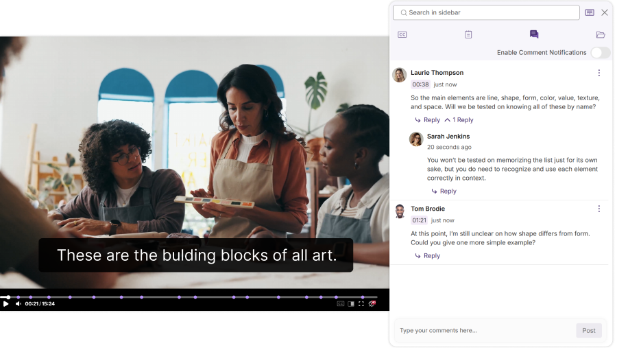 Turn passive viewing into active learning. Deliver on-demand and live video with a configurable, branded HTML5 player that supports multiple streams and interactive features like quizzing, note-taking, bookmarking, and commenting, with support for offline viewing.