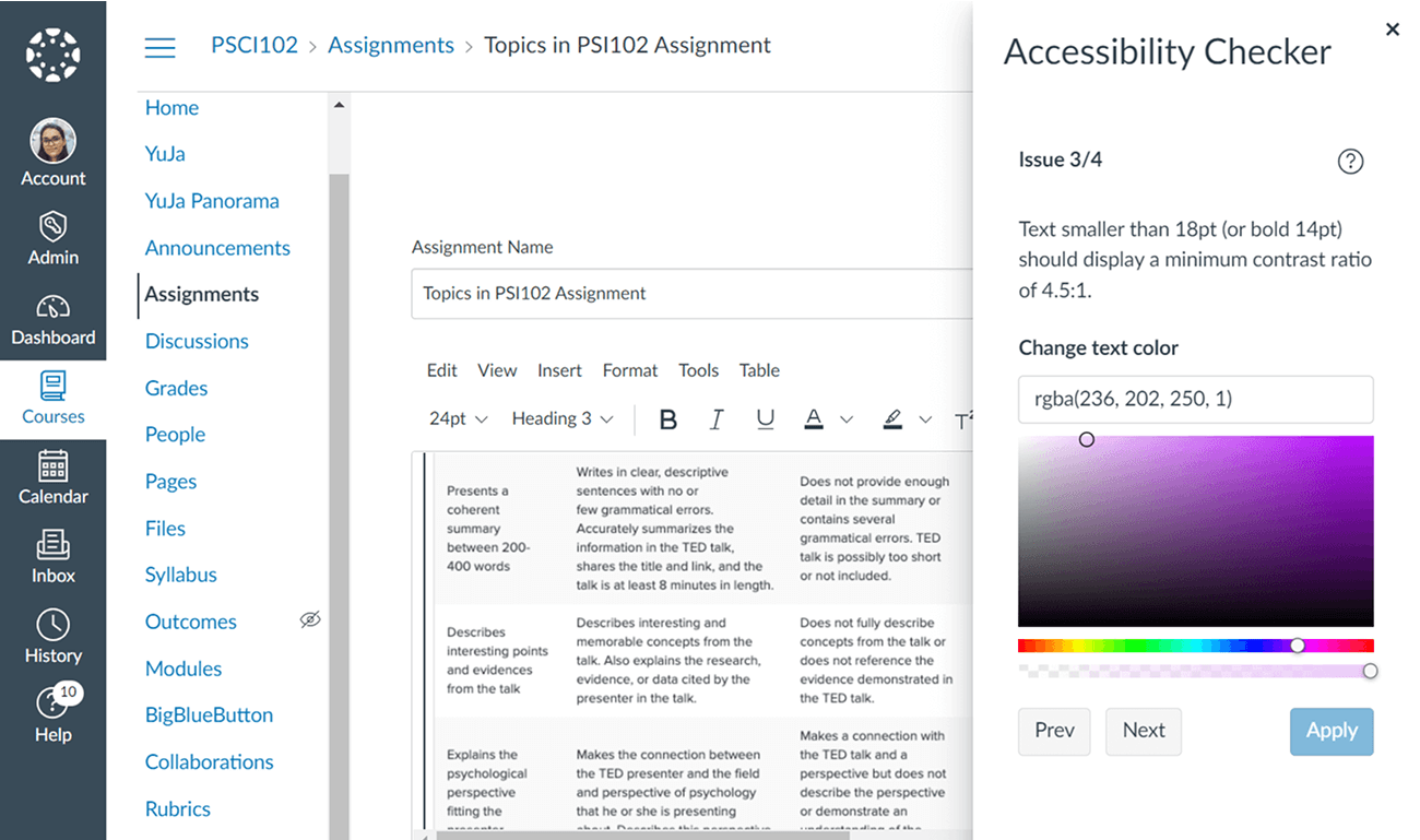 Content created and embedded in the HTML WYSIWYG Editor is analyzed and assigned an Accessibility Score to help ensure that content meets the highest accessibility standards. Instructors receive intuitive, real-time feedback on the accessibility of their original so they can remediate accessibility concerns on the spot.