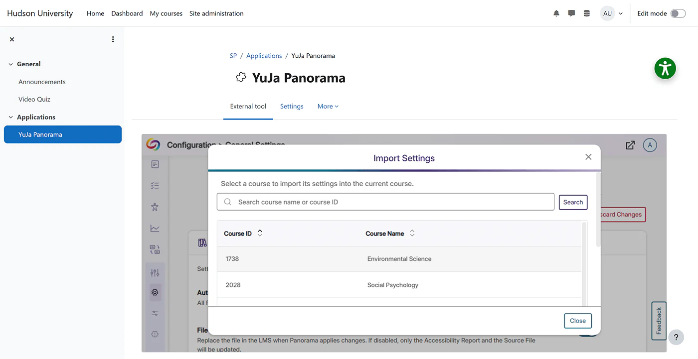 YuJa Panorama includes a cloud-based digital accessibility repository in Moodle, enabling instructors and departments to manage content efficiently and monitor accessibility scores from one consolidated dashboard.