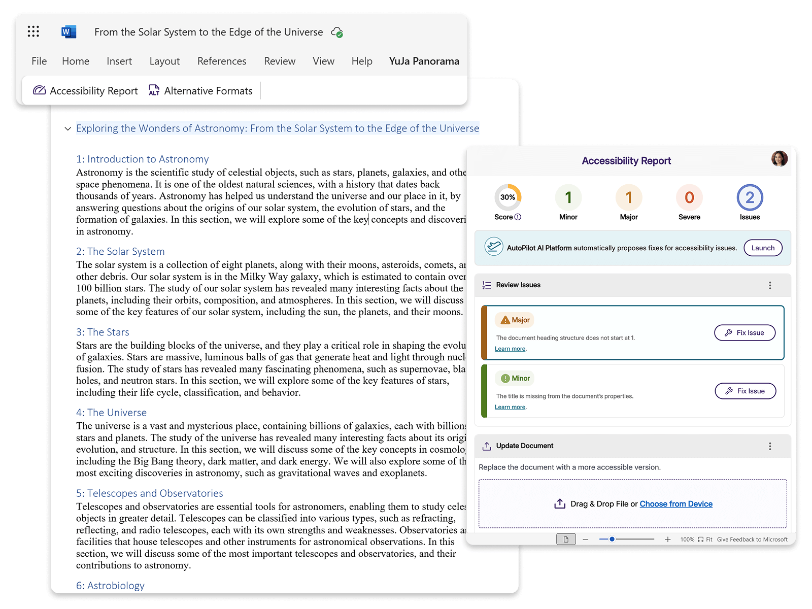 Fix accessibility issues without leaving Microsoft Word. Direct integration brings remediation capabilities into your familiar environment, allowing you to address accessibility concerns as you create and edit documents.