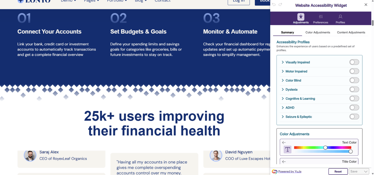 The YuJa Website Accessibility Widget enables institutions to improve digital inclusion and accessibility across your entire website footprint. With a toggle of a switch, users can control the UI, design and readability of websites.