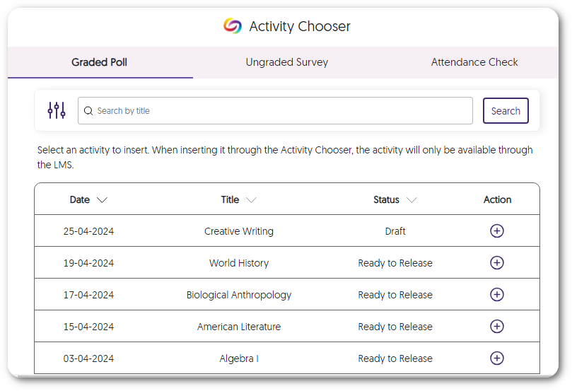 Scheduled polls can now be embedded in the LMS for automatic gradebook synchronization.