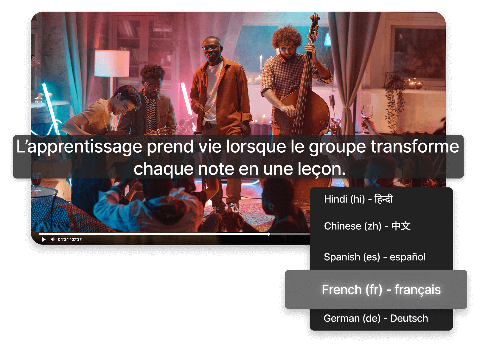 Read It. Hear It. Remember it. Pair high-quality language dubbing with powerful, automated captions. Our AI agents generate captions in multiple languages, giving students both visual and auditory reinforcement to support comprehension and learning.