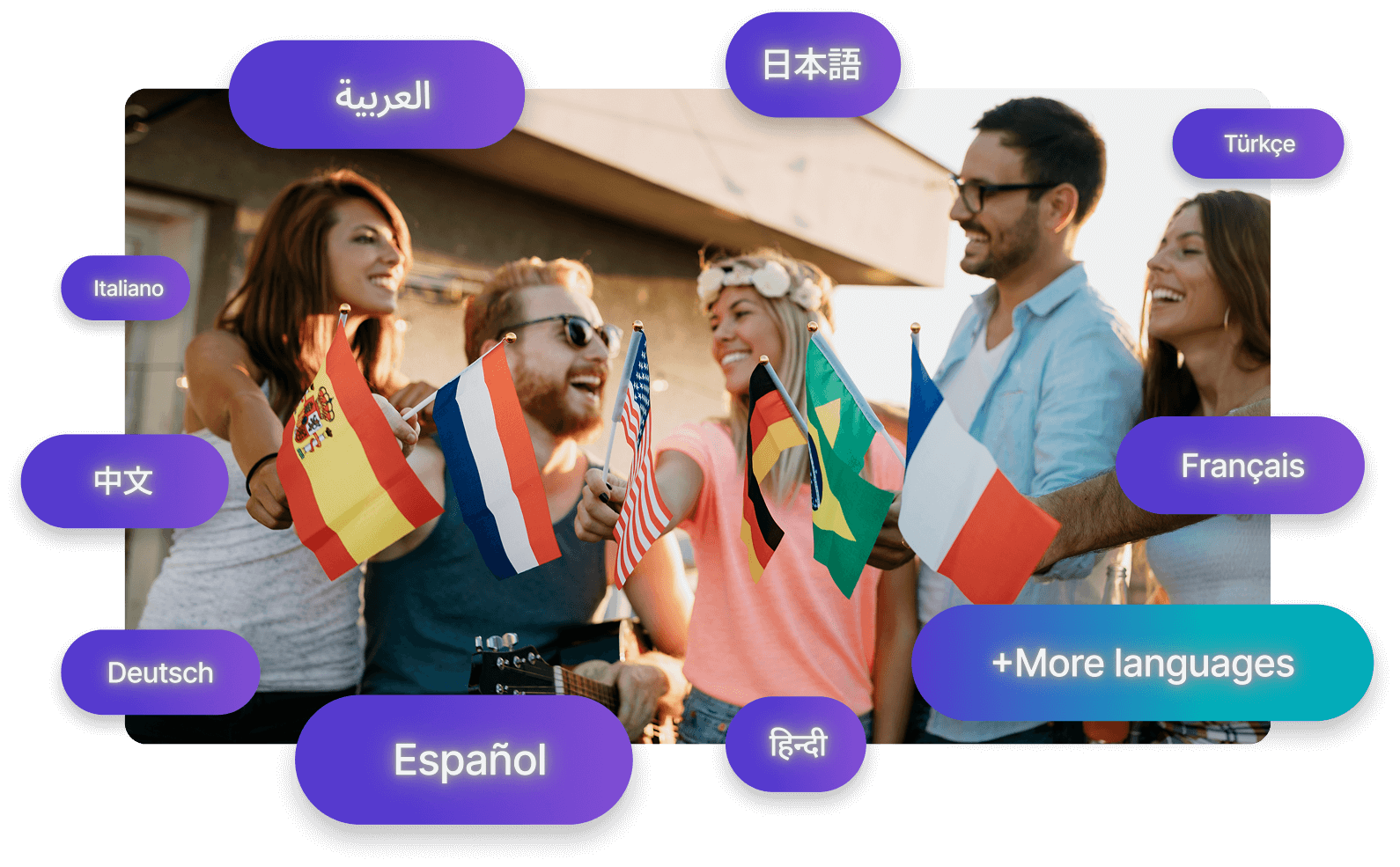 Make your videos more accessible to non-native English speakers with AI-powered language dubbing. Our AI agents automatically generate audio tracks in 25+ languages, helping you connect with diverse learners without extra production work.