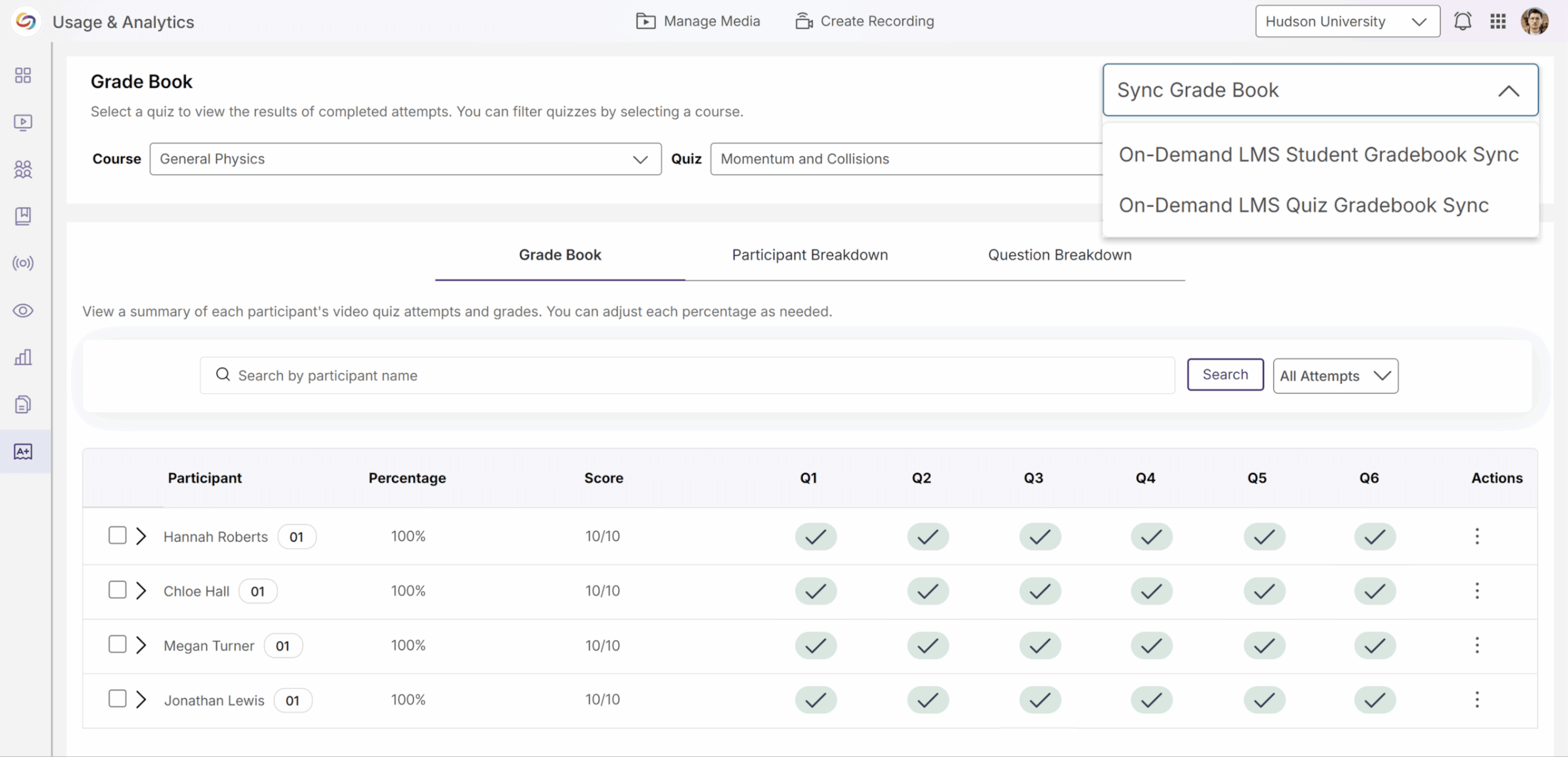 You can create quizzes from existing video content in minutes and automatically receive real-time feedback. Results sync directly with your LMS Gradebook, letting you measure outcomes and adjust instruction efficiently.